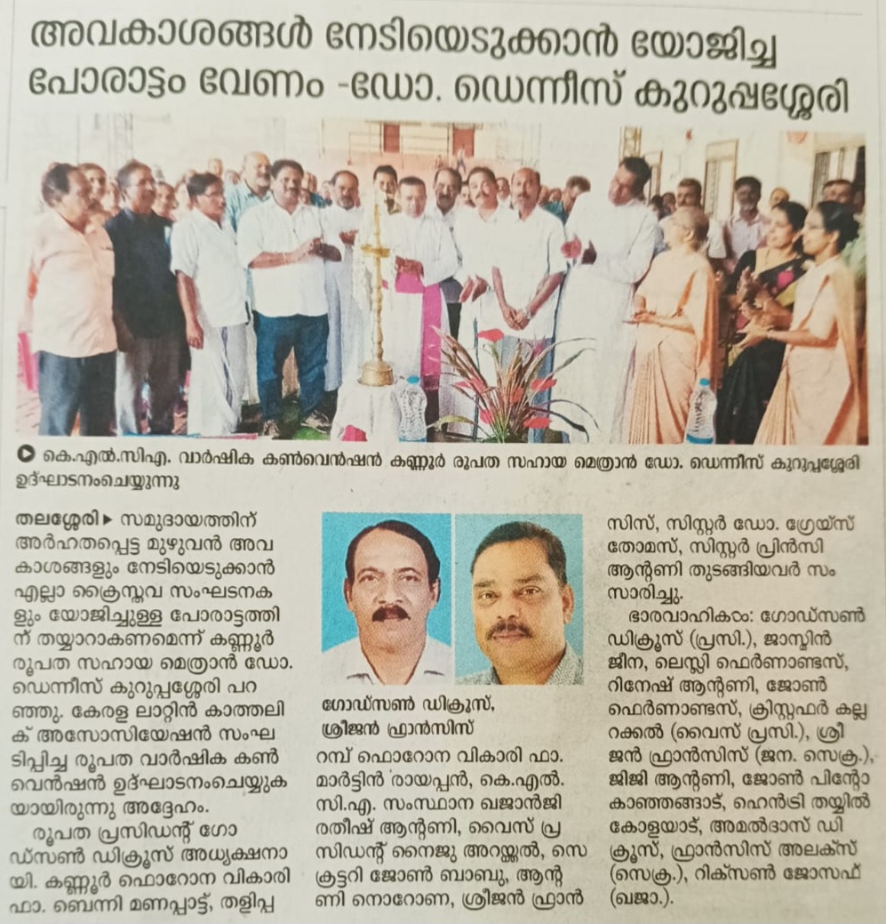 | KERALA LATIN CATHOLIC ASSOCIATION | Press Release 15.02.26 ജെ ബി കോശി കമ്മീഷൻ ശുപാർശകൾ നടപ്പിലാക്കുന്നത് ഉൾപ്പെടെ ലത്തീൻസമുദായത്തിന് അർഹമായ പരിഗണ ലഭിച്ചില്ലെങ്കിൽ തിരിച്ചടിയുണ്ടാകും. കെഎൽസിഎ ------------------------------- ആലപ്പുഴ: നാല്പതോളം നിയമസഭാ നിയോജക മണ്ഡലങ്ങളിൽ നിർണായക ശക്തിയായ…