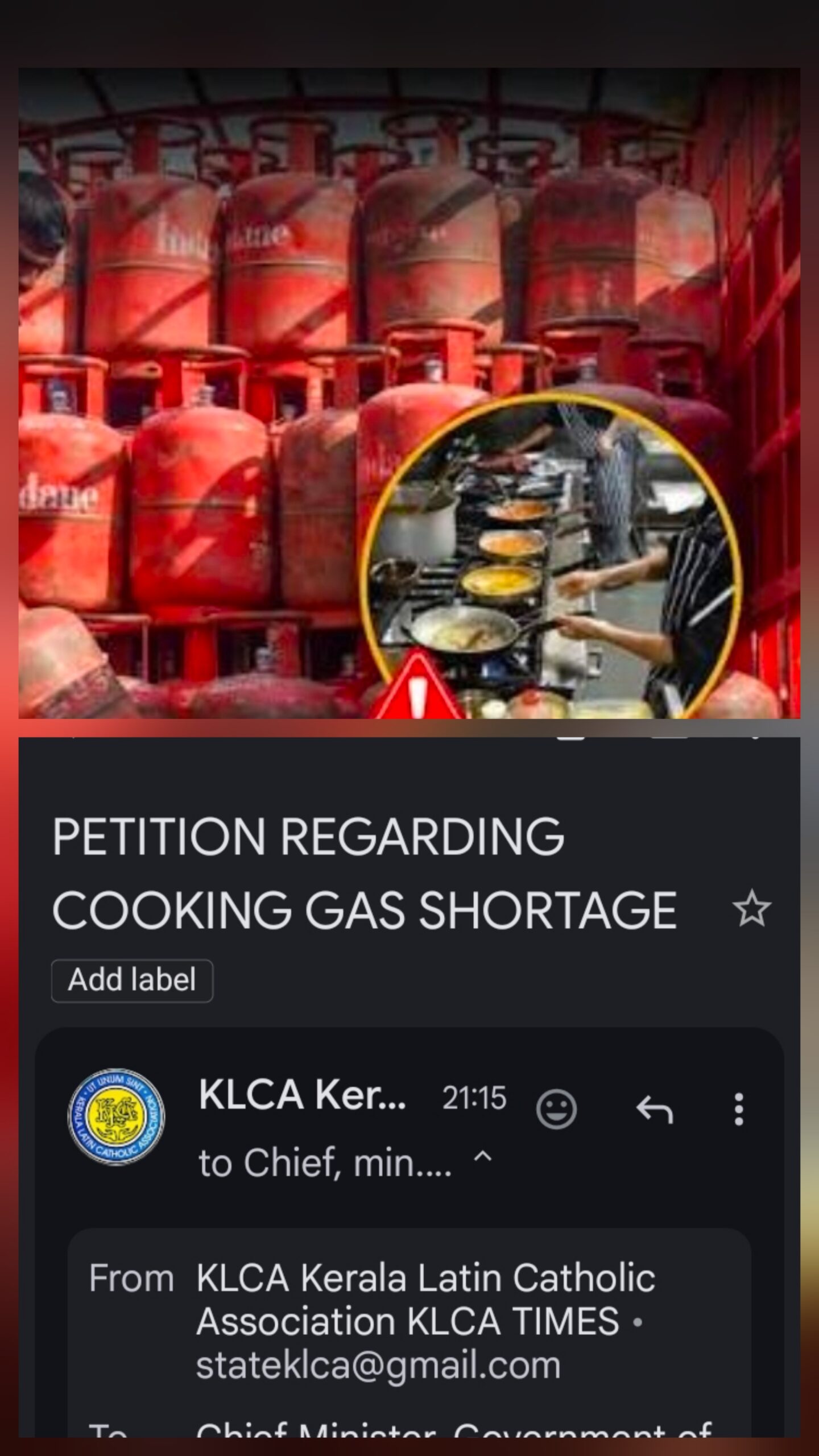 പാചകവാതക ലഭ്യത ഉറപ്പ് വരുത്തണം : കേരള ലാറ്റിൻ കാത്തലിക്ക് അസോസിയേഷൻ