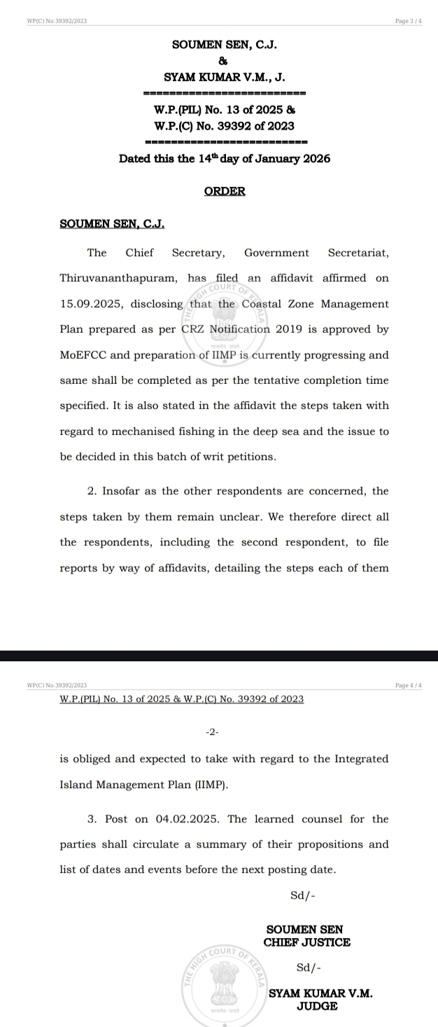 CRZ 2019 വിജ്ഞാപനപ്രകാരം ദ്വീപുകൾക്ക് 20 മീറ്റർ ദൂരപരിധി ഇളവ് ലഭ്യമാകുന്ന IIMP പൂർത്തിയാക്കാത്തത് സംബന്ധിച്ച് നിലവിലുള്ള കേസിൽ ബന്ധപ്പെട്ട വകുപ്പുകൾ നൽകിയിട്ടുള്ള മറുപടി അവ്യക്തമെന്ന് കോടതി. സംയോജിത ദീപ് വികസന പ്ലാൻ (IIMP) സംബന്ധിച്ച കാര്യങ്ങൾ വ്യക്തമാക്കിക്കൊണ്ട് സത്യവാങ്മൂലം ഫയൽ…